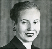 María Eva Duarte de Perón (Los Toldos, Junín, 1919 – Buenos Aires, 1952), fue dirigente política y actriz. De orígenes humildes, a los quince años migró a la ciudad de Buenos Aires donde se dedicó a la actuación. En 1943 fue una de las fundadoras de la Asociación Radial Argentina (ARA), de la que fue elegida presidenta.