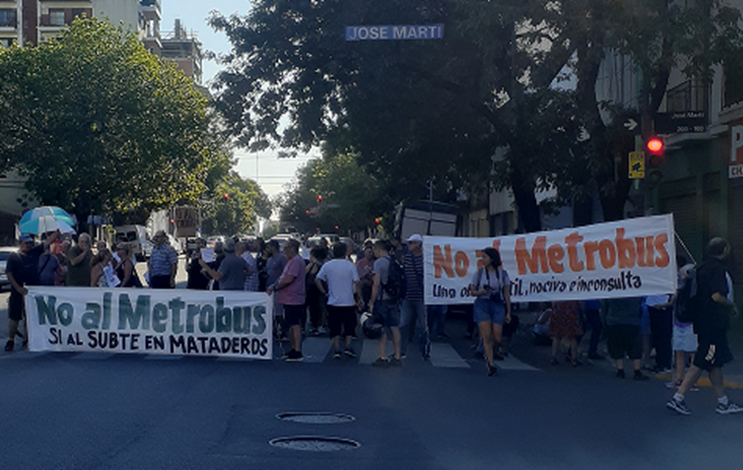 Otra protesta contra la obra del Metrobus Alberdi Directorio tuvo lugar el jueves 26 en la esquina de la Av. Juan Bautista Alberdi y José Martí, en el barrio de Flores, Comuna 7.