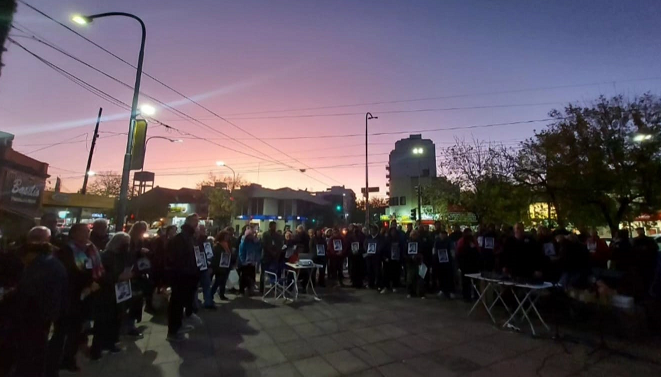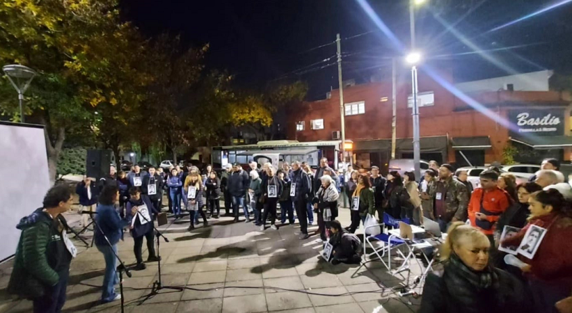 Finalizado el acto en la plaza Salaberry comenzó la multitudinaria marcha de antorchas hacia la Iglesia San Francisco Solano, último lugar donde el padre Mugica ofició misa.