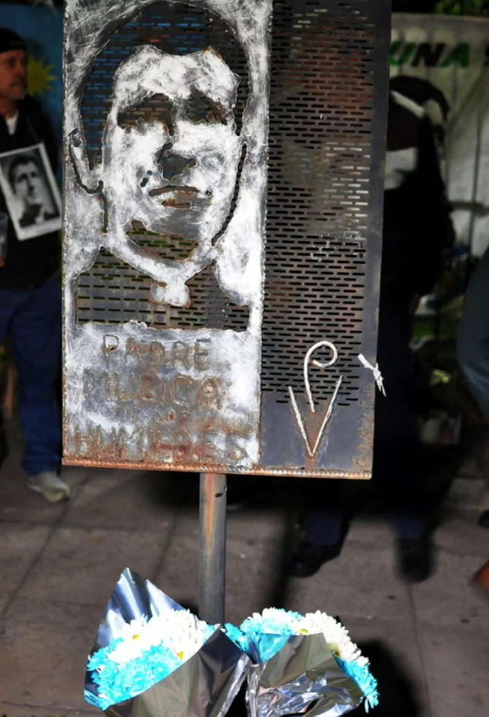 Allí los Curas en la Opción por los Pobres y los Curas Villeros celebraron una misa homenaje, con las presencias de Nora Cortiñas, dirigentes políticos y de organizaciones sociales, fieles y vecinos.