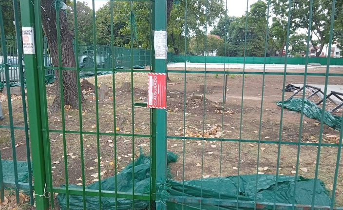 Polideportivo Santojanni, acciones de protesta y clausura de la obra