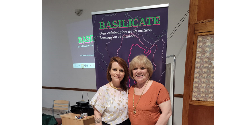 En la foto, la Arquitecta Mimí Coviello, coordinadora del Centro dei Lucani nel Mondo “Nino Calice”, junto a Ana María Claps de la Federación de Asociaciones de la Basilicata en Argentina.